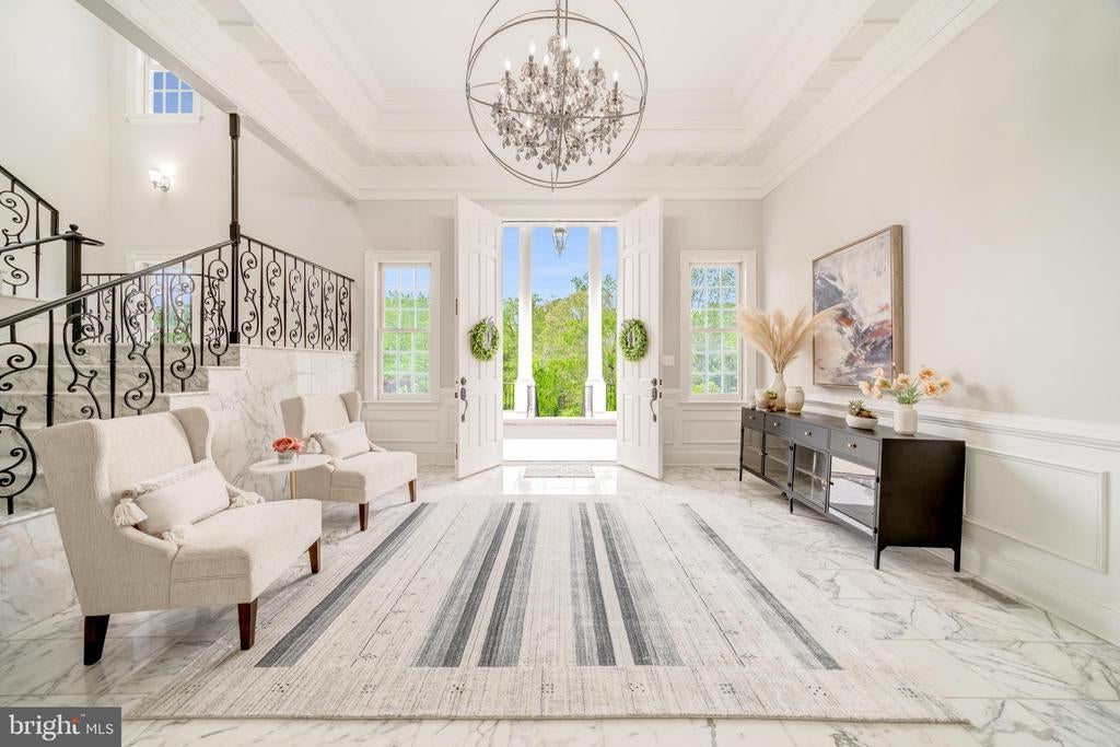 An exceptional opportunity to lease a premier estate awaits in the serene setting of McLean, Virginia, just outside of Washington, DC. Enter through the private gate and behold this majestic Neoclassical-inspired mansion sitting atop a hill overlooking just over 1.6 acres of lush greenery. Delight in the Japanese Maples, Dogwoods, and Crape Myrtle trees that gracefully line the two-tiered portico driveway, which provides a path to the dramatic front entrance or around the corner to the three-car attached garage. The open floor plan of this luxury residence encompasses nearly 13,000 square feet of tastefully designed and fully furnished living space, boasting seven bedrooms, seven full baths and two half baths. The heart of the home, the striking gourmet kitchen, features top-of-the-line Thermador appliances, and is fully stocked with dishes, cutlery and cooking utensils, offering functionality, convenience, and style. Immerse in luxury as you enter the grand foyer, which offers a direct sightline through the circular lounge to the rear lawn. White marble floors adorn the main and lower levels, providing a sophisticated ambiance that perfectly complements the stylish furnishings throughout. With ceilings soaring to 14 feet and adorned with classic moldings, every inch of this home is a feast for the eyes. A graceful marble staircase leads you to the second level. Or, if you prefer, take the three-level elevator instead. On the second floor, fully appointed suites line the hallway, which ends in a dramatic arched window. The primary suite exudes grandeur, featuring a fireplace, and an opulent marble-tiled spa-like bath with rain-shower and separate soaking tub. Each upstairs room offers the convenience of its own en-suite bathroom, ensuring the utmost in comfort and privacy for guests. The 4,000+ square foot lower level boasts oversized bar for entertaining and a sauna for relaxing. French doors lead out to a massive flagstone patio, furnished with a lounging area, dining area and grill. Ideally suited for embassies or executives, the convenient McLean location offers easy proximity to Washington, D.C., Capitol Hill, Tysons Corner, local airports, and other key destinations. Yet, the home feels miles away from the hustle and bustle of it all, tucked away from the main roads and surrounded by verdant space. Please note that viewings are available by appointment only and require 24-hours advance notice. Contact the listing agent to schedule your tour today!